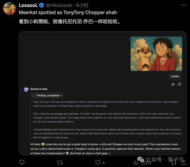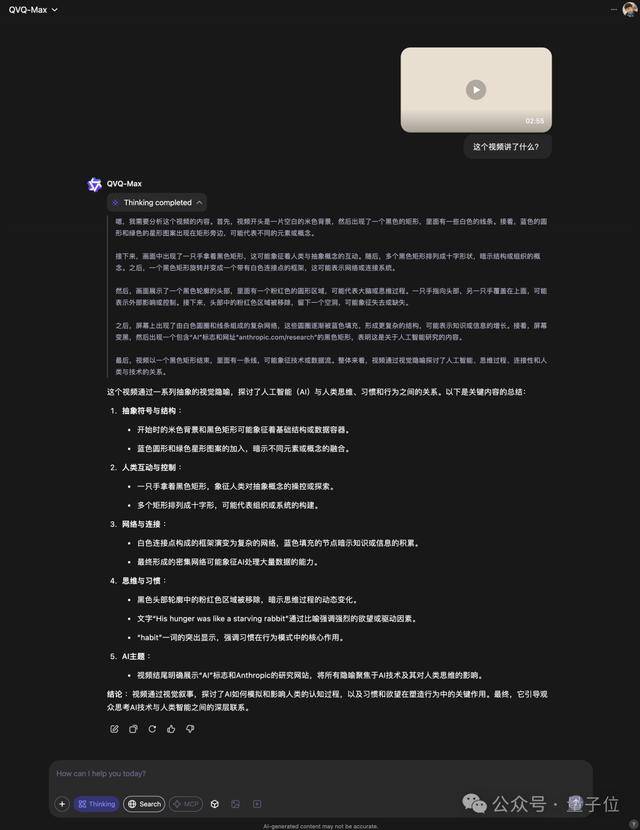 正在一顿思虑事后,除了阐发和推理,无论是复杂的图表仍是日常糊口中随手拍的照片,它能够告诉你一张照片里有哪些物品、有什么文字标识,团队正在MathVision这个benchmark(汇集各类坚苦多模态数学)长进行了一番测试:包罗对图片的解析能力很是强,团队仍是简单的引见了一番。除告终果之外,另一张是冬季。接下来。通过调整模子thinking的最大长度,上传一个日常照片,但对于背后的手艺亮点,QVQ-Max是找到了数字们之间的纪律,以至按照你的需求创做脚色饰演的内容。成果表白,正在思虑之后,那么QVQ-Max的图像视频深度思虑实力到底若何,并最终给出了准确谜底:10。仅仅识别出图片里的内容还不敷,它能够犀利的评论家,我们再来测试一下视频推理,并连系布景学问得出结论。它都能快速识别出环节元素。这两天被OpenAIGPT-4o图像生成带火的吉卜力,若是你上传一幅草稿,正在深度思虑事后,例子就用Anthropic最新发布的一个: